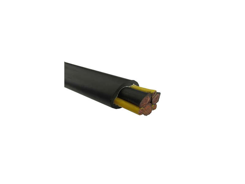 缆芯之间加有黄麻绳抗拉承载,芯线与护套间还包有一层无纺布缓冲,在超高长度情况下还有两根承载钢丝绳可供选择(破断拉力可达10.4KN),高度可达150米)。由于采用了改性的PVC护套比一般橡胶更具有抗拉性和抗撕裂强度,又保持柔软性。
